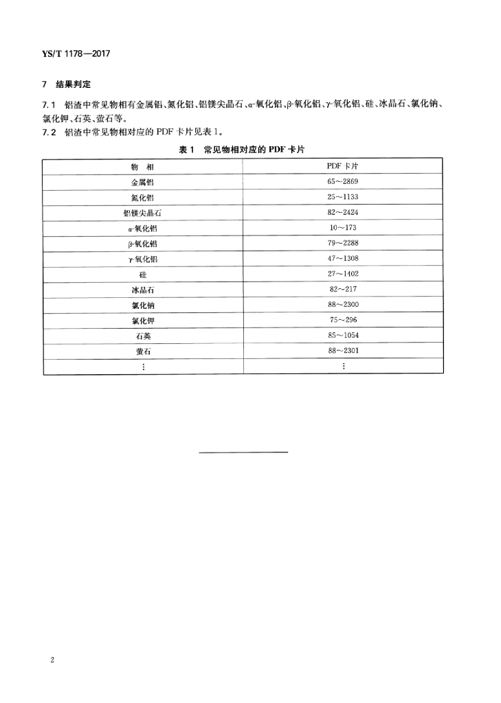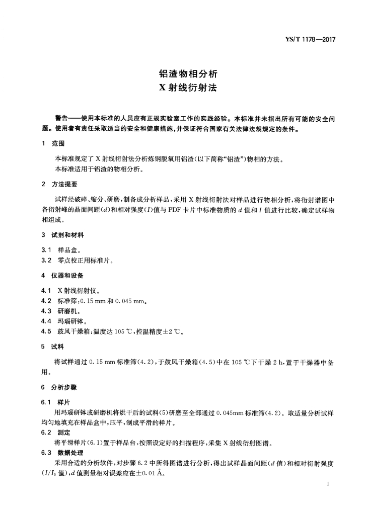 YS/T 1178-2017 铝渣物相分析X射线衍射法