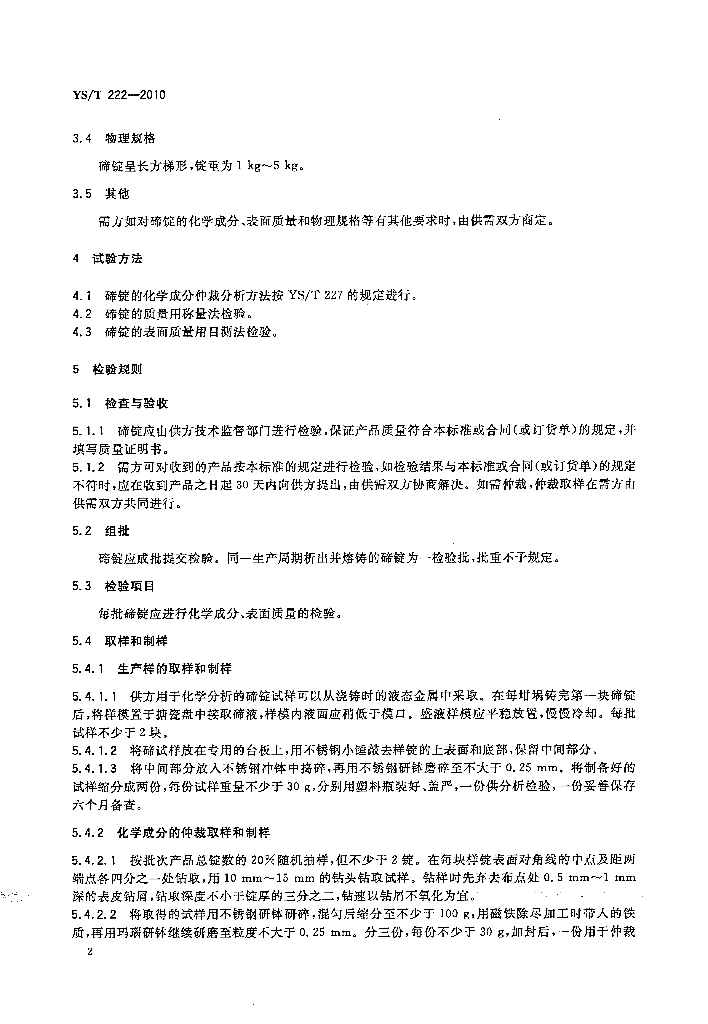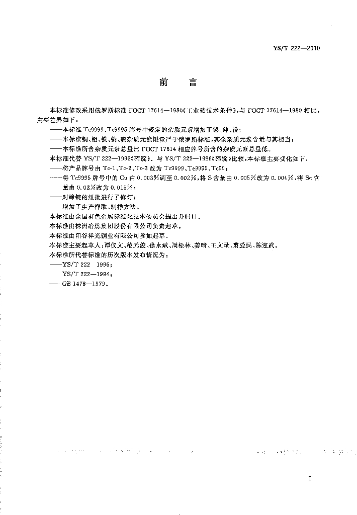 YS/T 222-2010 碲锭