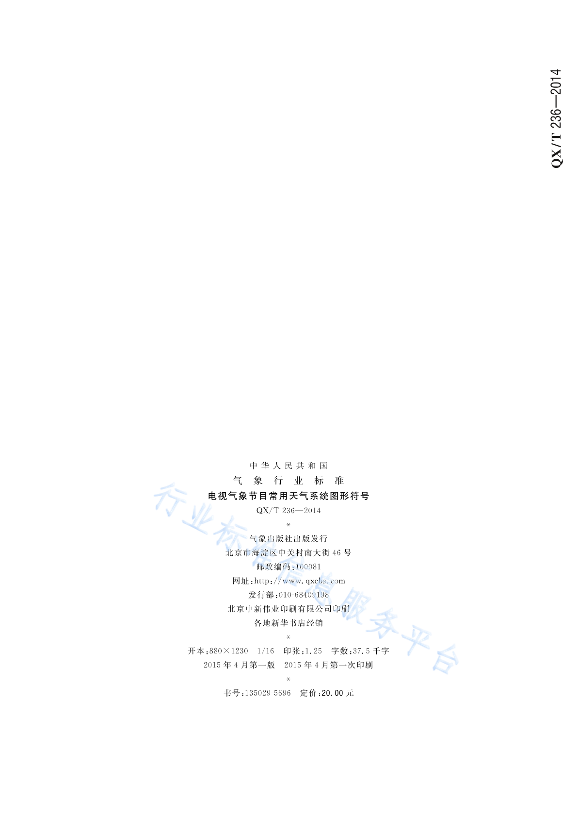 QX/T 236-2014 电视气象节目常用天气系统图形符号