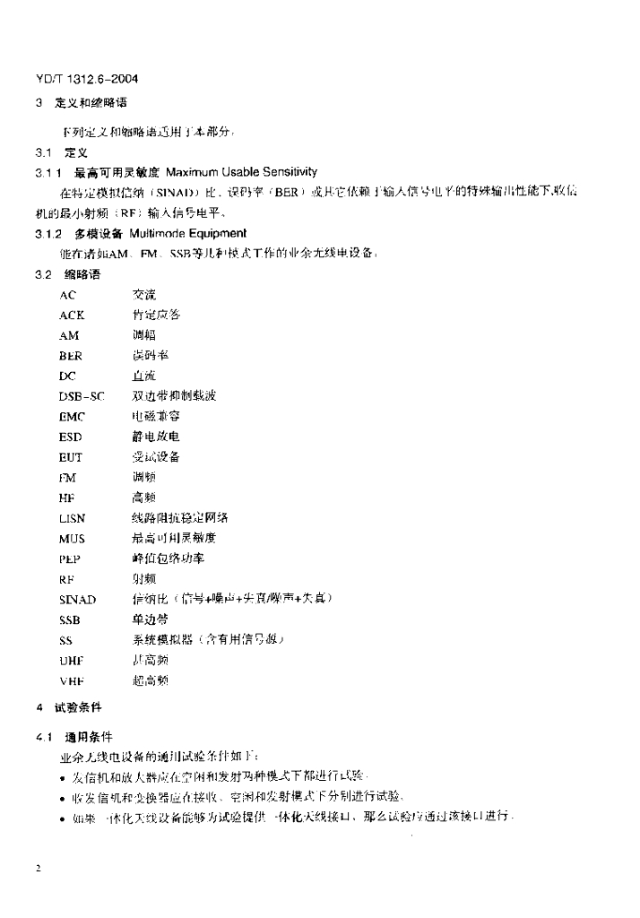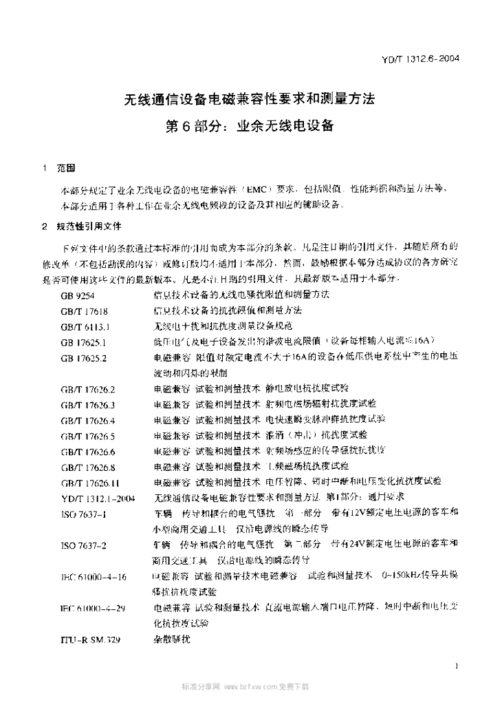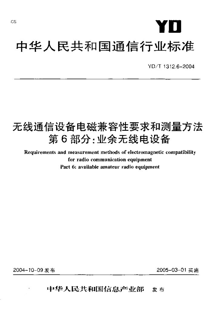 YD/T 1312.6-2004 无线通信设备电磁兼容性要求和测量方法 第6部分:业余无线电设备