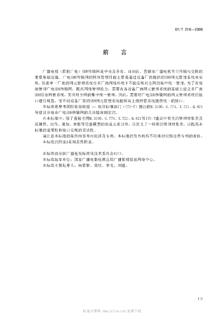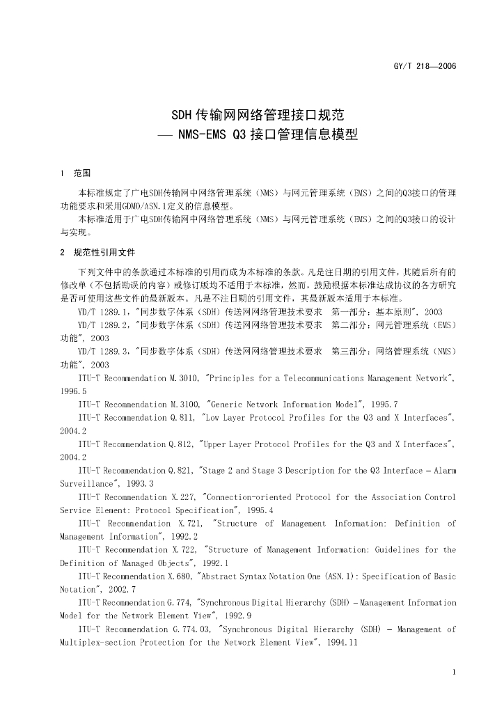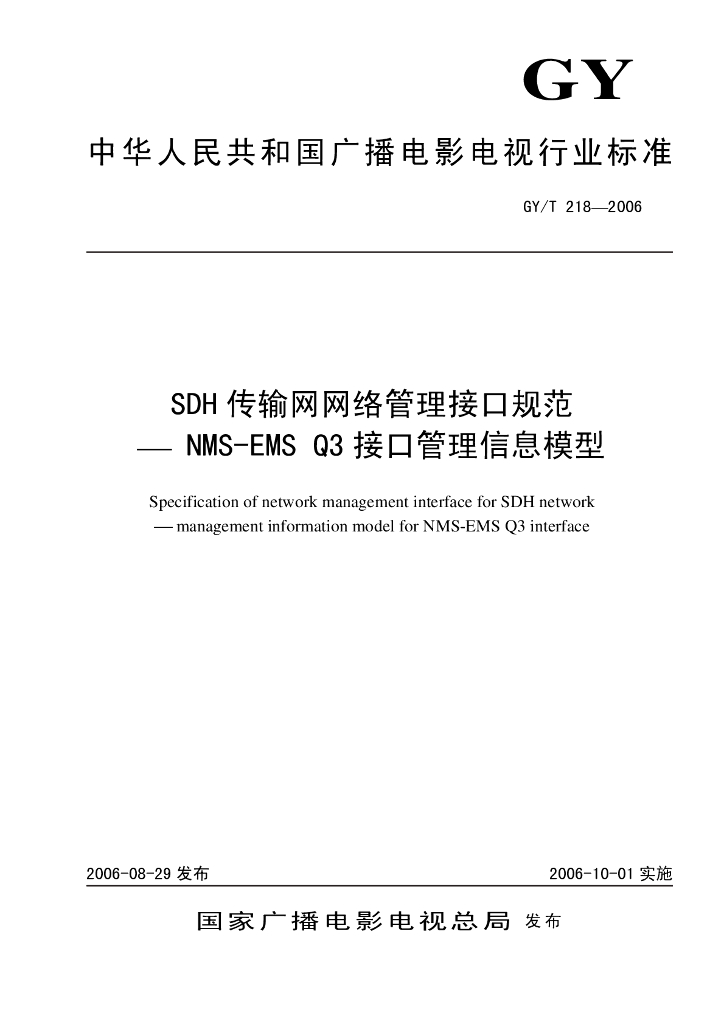 GY/T 218-2006 SDH传输网网络管理接口规范NMS-EMS Q3接口管理信息模型