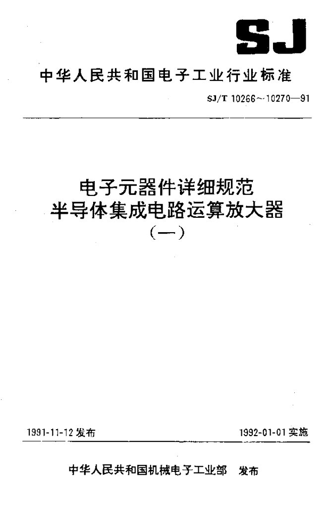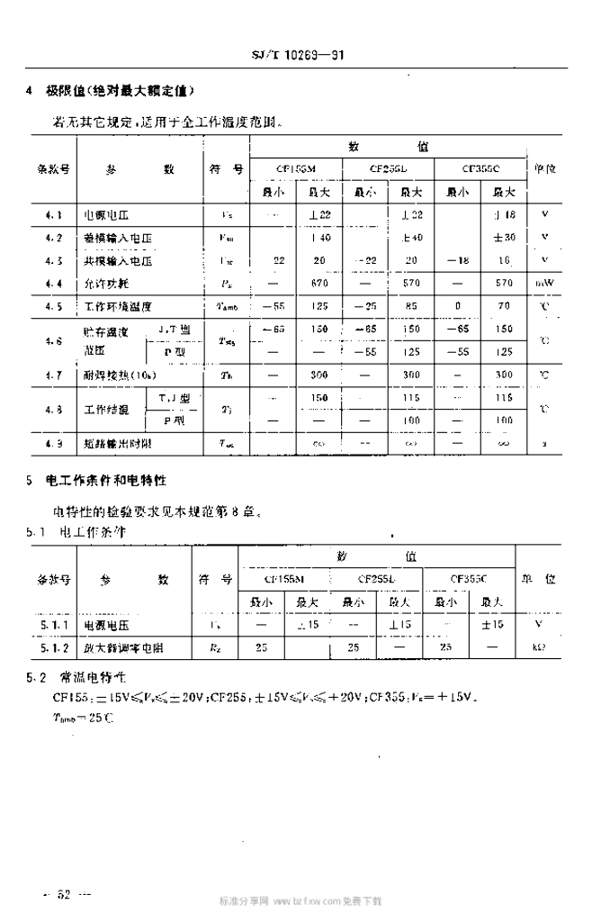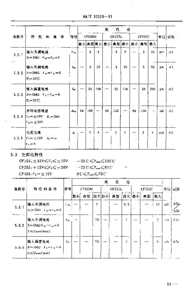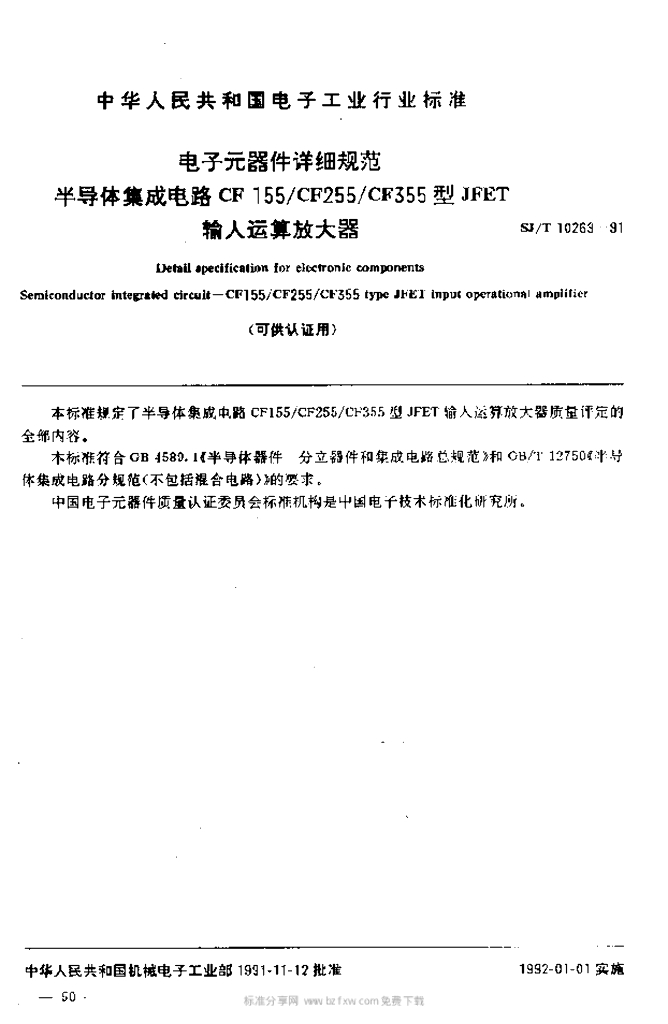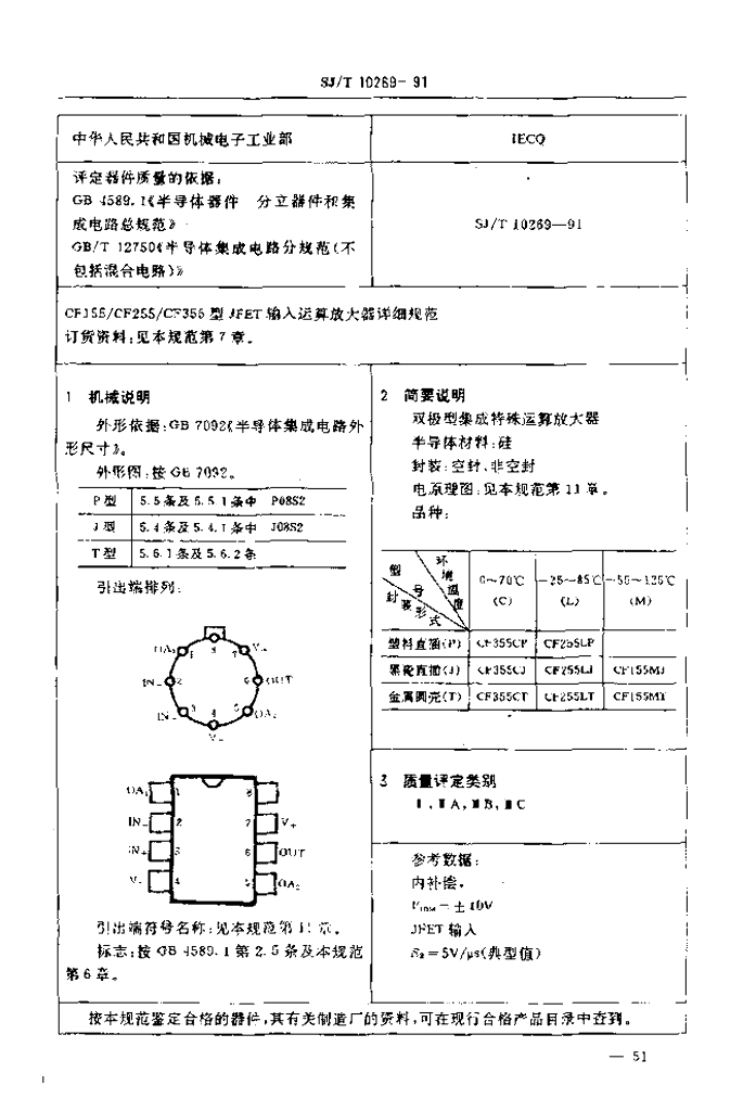 SJ/T 10269-1991 电子元器件详细规范半导体集成电路CF 155/CF 255/CF 355型JFET输人运算放大器