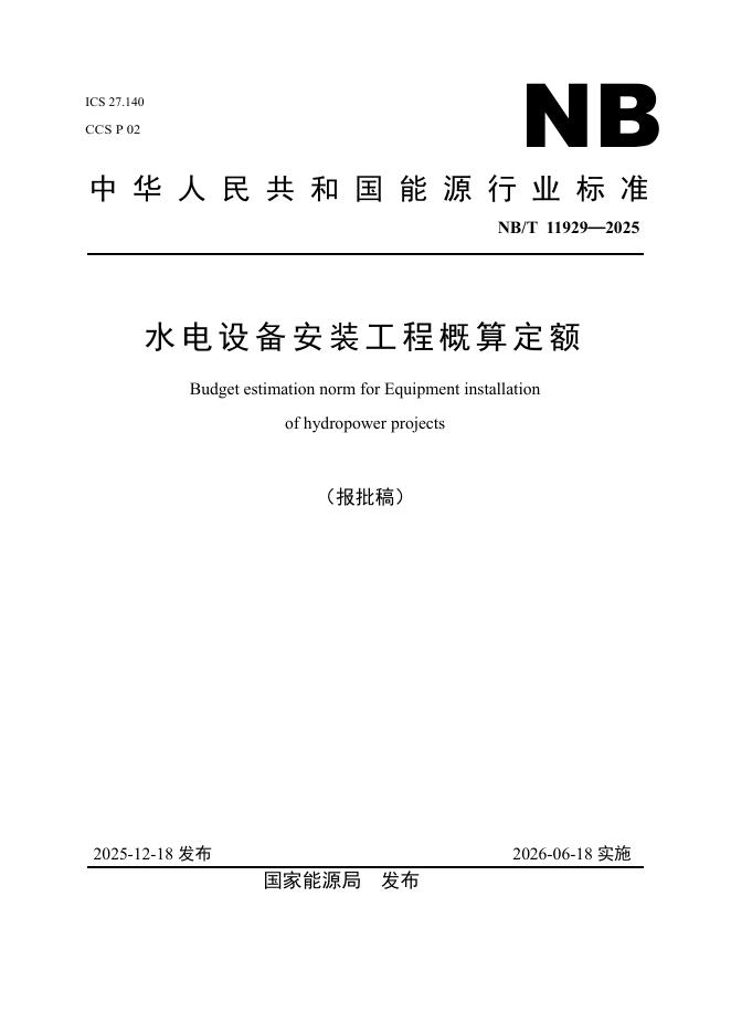 NB/T 11929-2025 水电设备安装工程概算定额