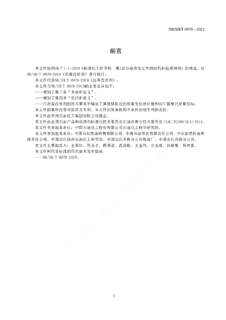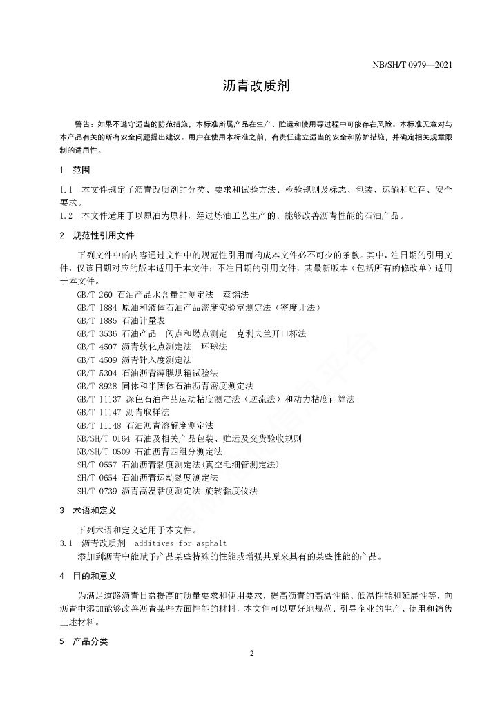 NB/SH/T 0979-2021 沥青改质剂