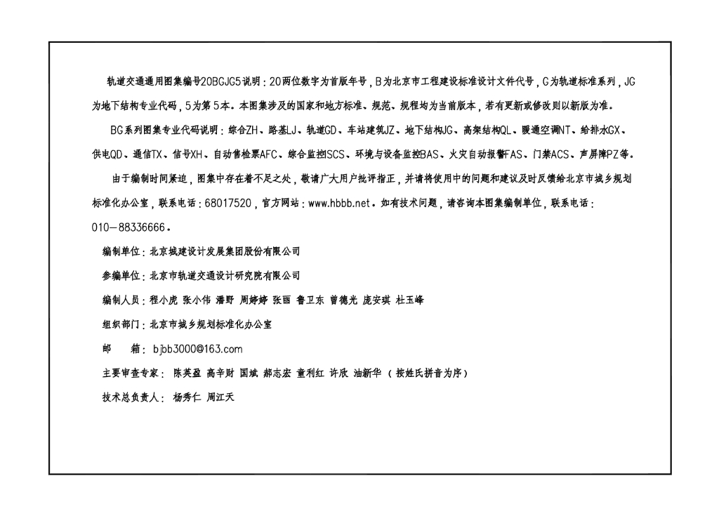 20BGJG5 明挖结构平面整体表示方法制图规则及通用构造详图(北京市轨道交通通用图集)