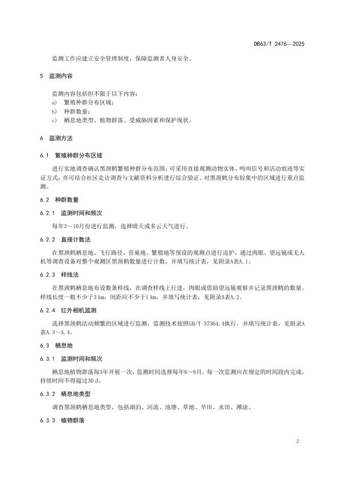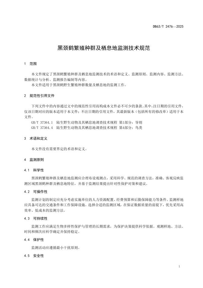 DB63/T 2476-2025 黑颈鹤繁殖种群及栖息地监测技术规范