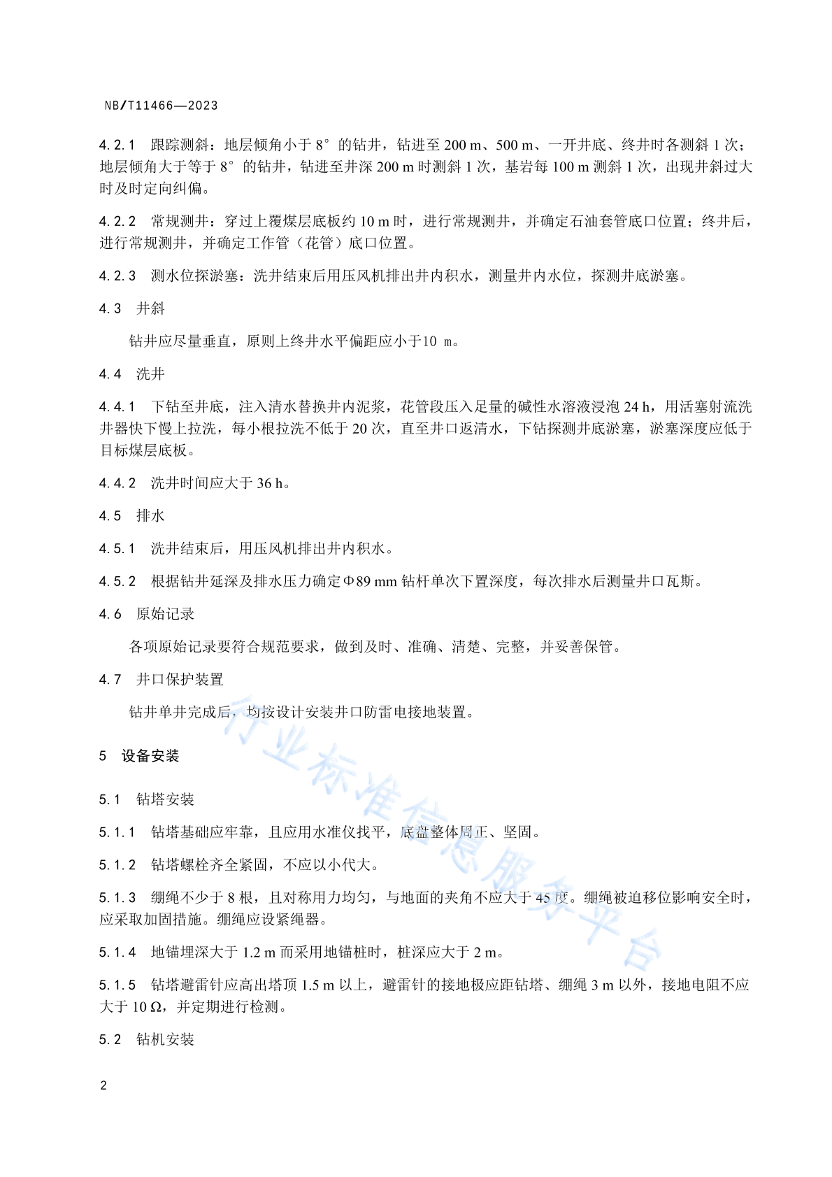 NB/T 11466-2023 采动区地面瓦斯抽采直井施工技术规范