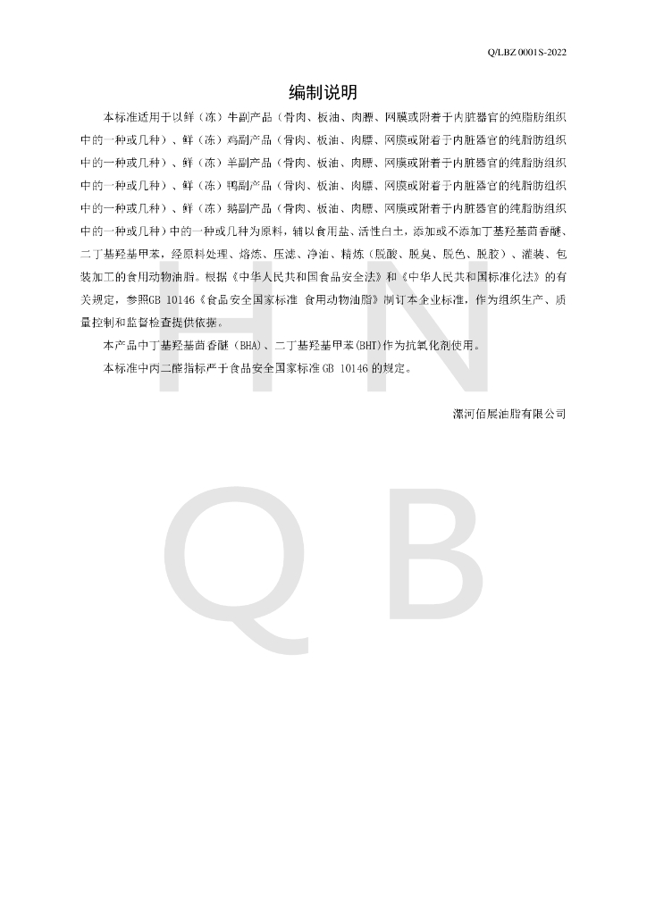 Q/LBZ 0001S-2022 食用动物油脂及其制品