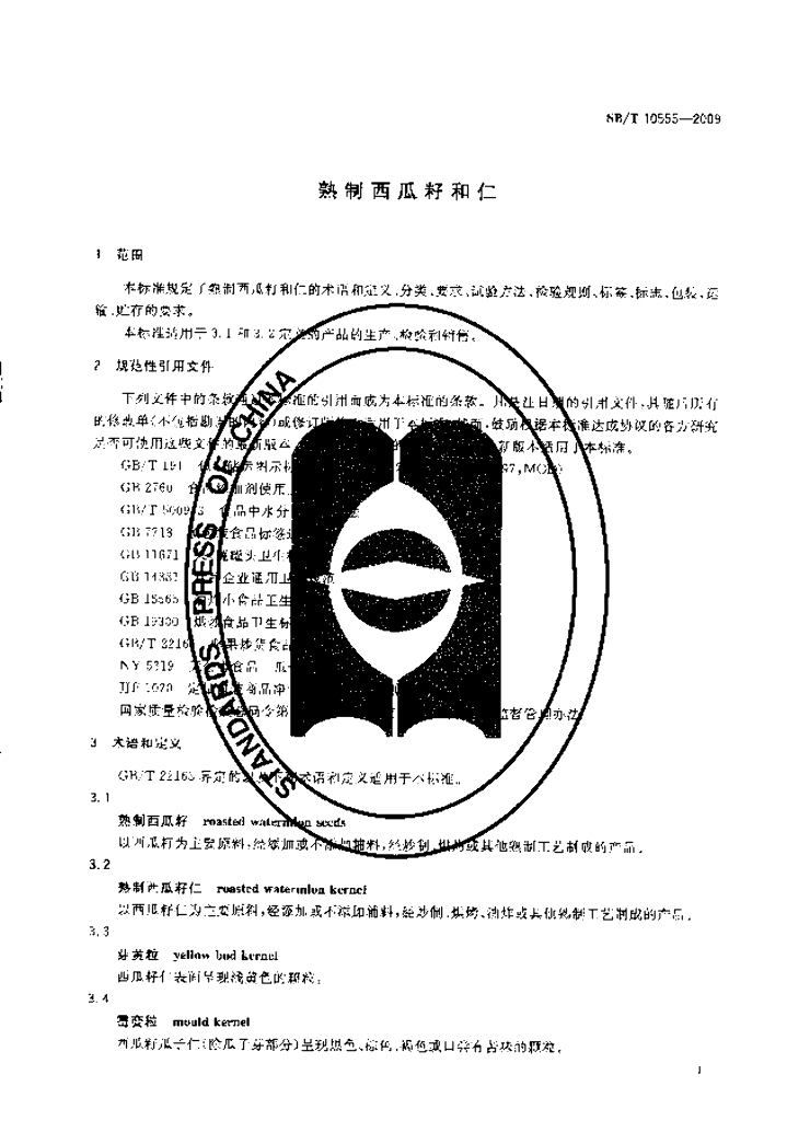 SB/T 10555-2009 熟制西瓜籽和仁