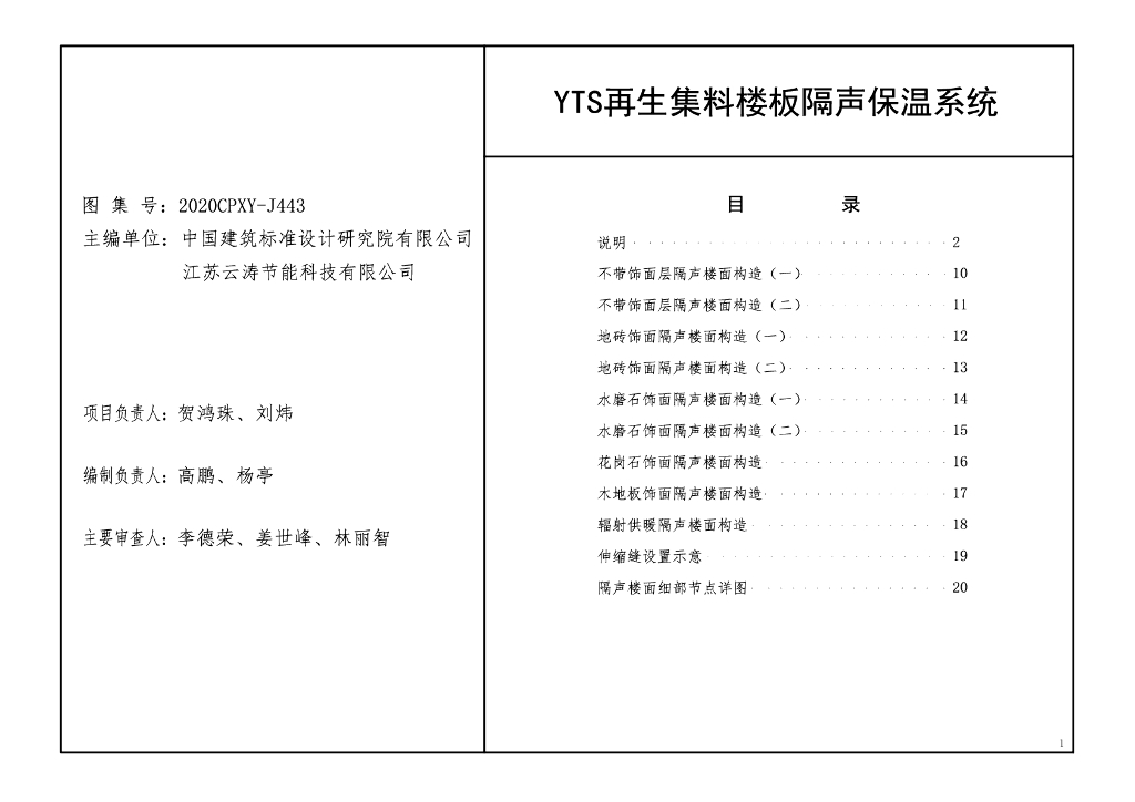 2020CPXY-J443 YTS再生集料楼板隔声保温系统图集