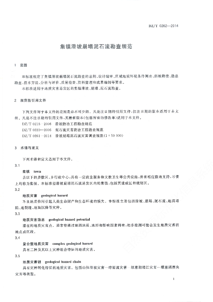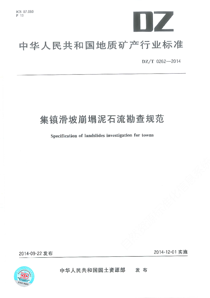DZ/T 0262-2014 集镇滑坡崩塌泥石流勘查规范