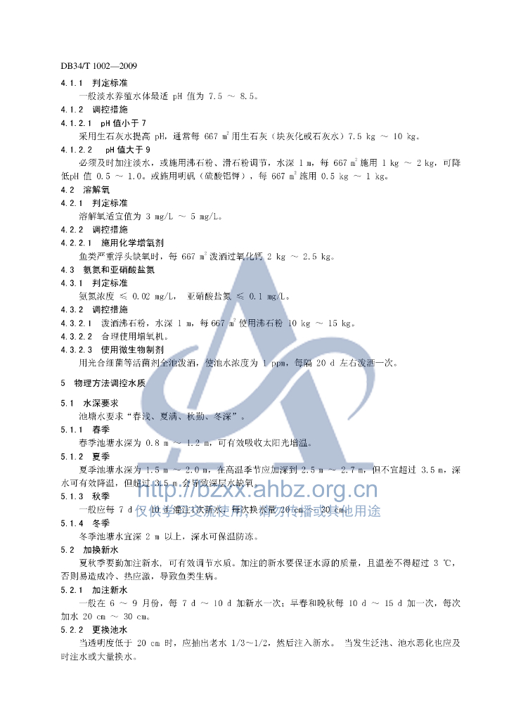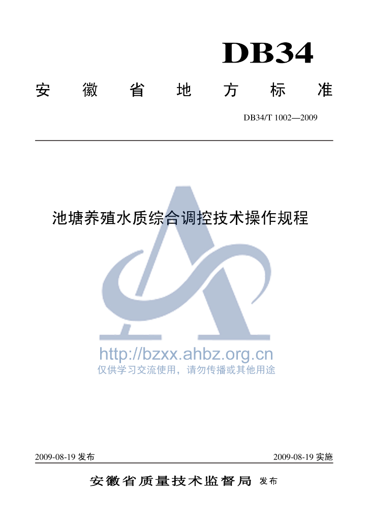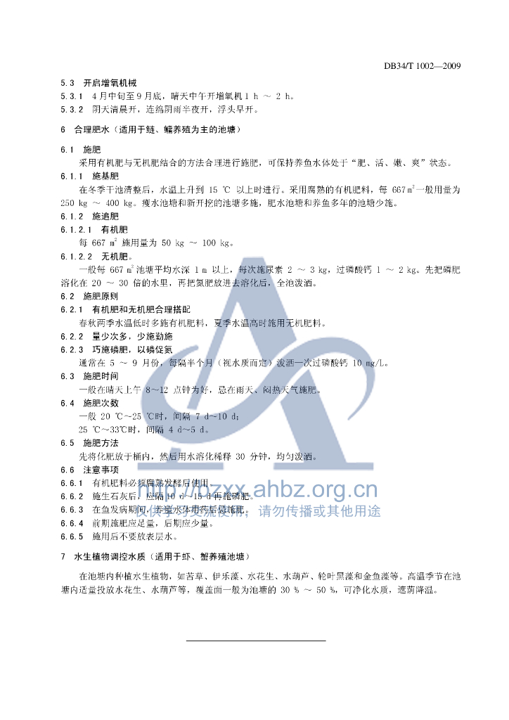 DB34/T 1002-2009 池塘养殖水质综合调控技术操作规程