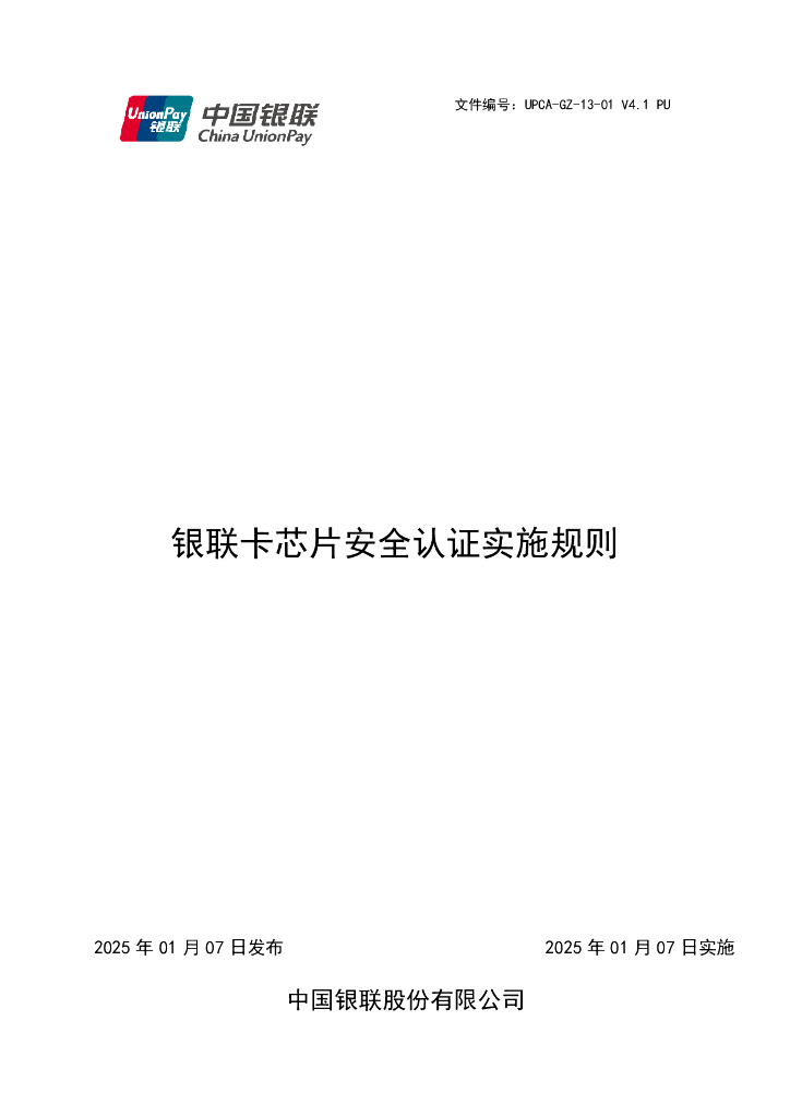 UPCA-GZ-13-01V4.1PU 银联卡芯片安全认证实施规则