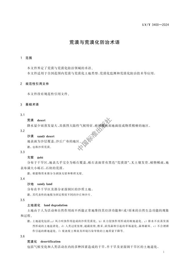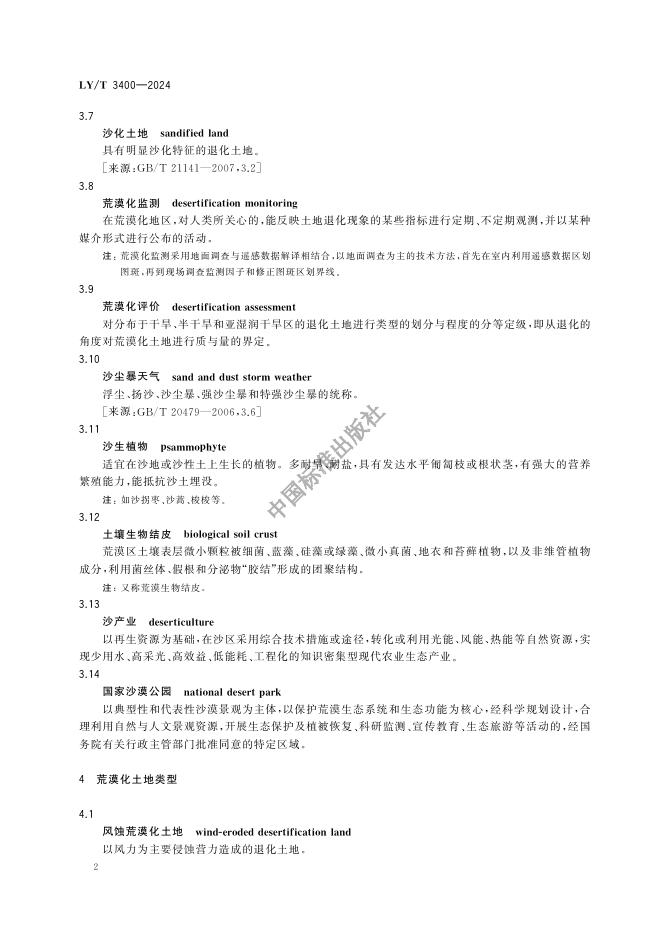 LY/T 3400-2024 荒漠与荒漠化防治术语