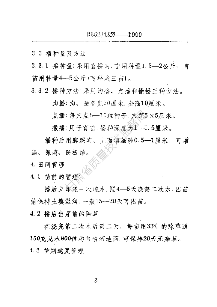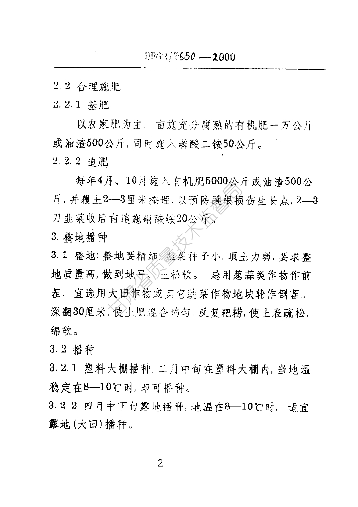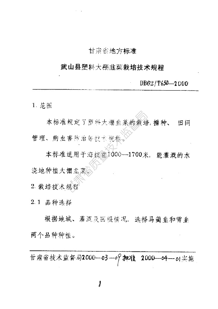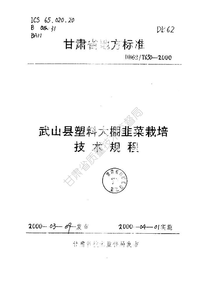 DB62/T 650-2000 武山县塑料大棚韭菜栽培技术规程