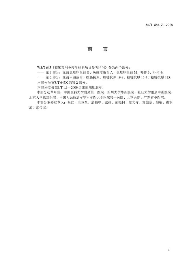 WS/T 645.2-2018 临床常用免疫学检验项目参考区间 第2部分:血清甲胎蛋白、癌胚抗原、糖链抗原19-9、糖链抗原15-3、糖链抗原125