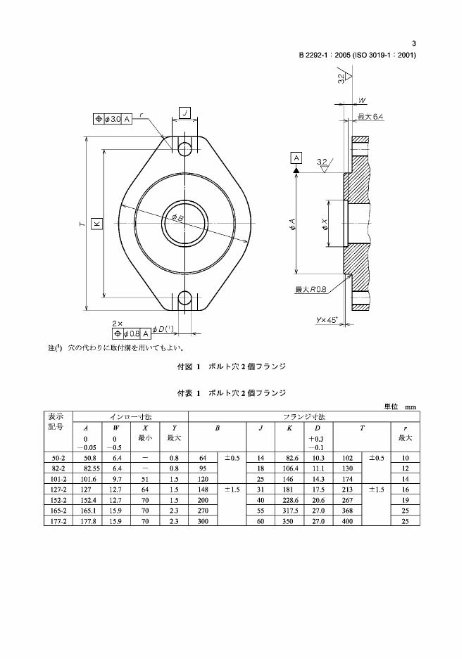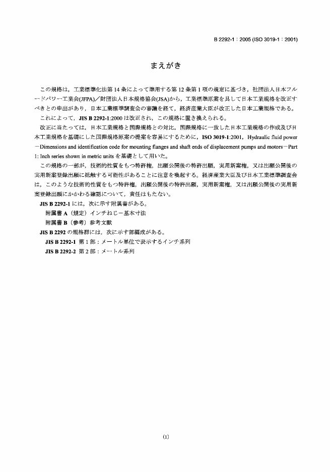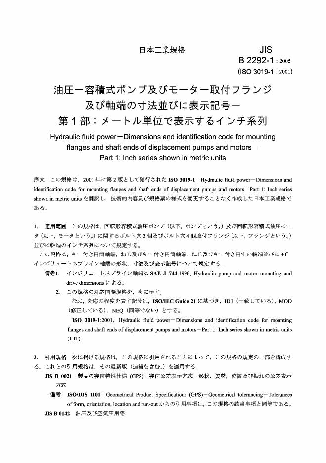 JIS B2292-1-2005 Hydraulic fluid power-Dimensions and identification code for mounting flanges and shaft ends of displacement pumps and motors-PartInch series shown in metric units