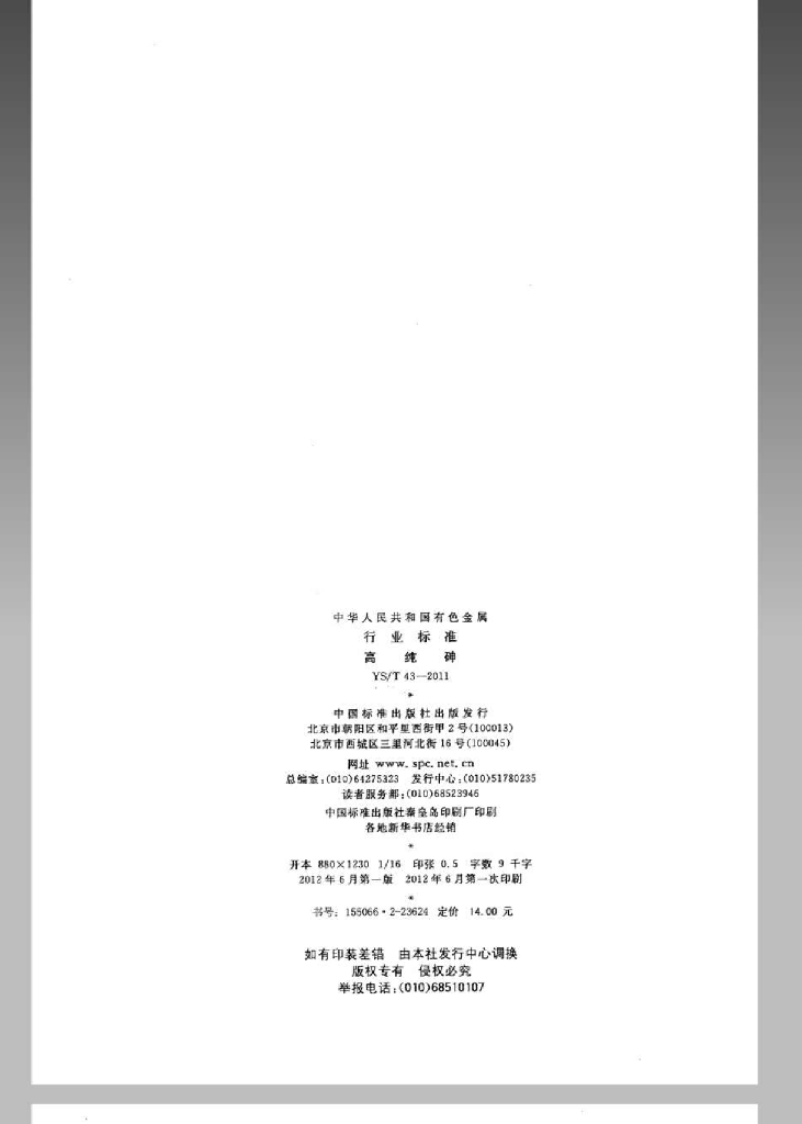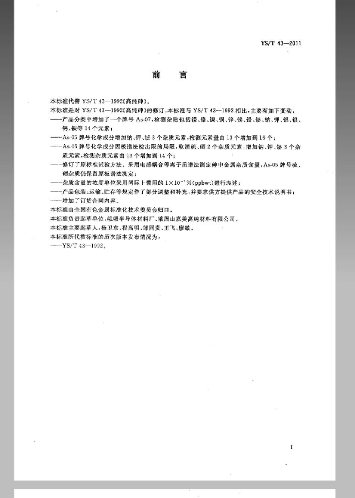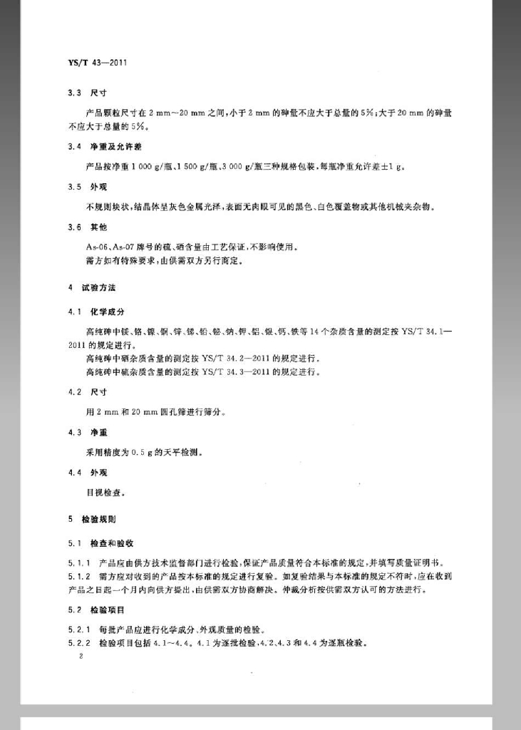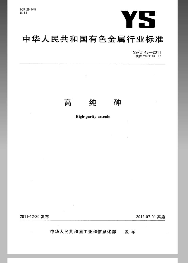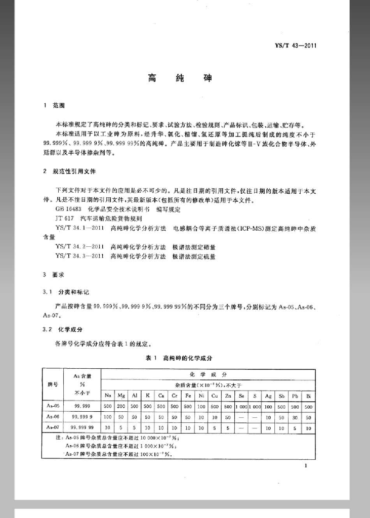 YS/T 43-2011 高纯砷