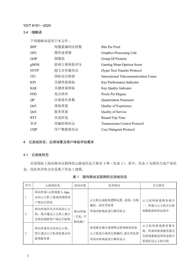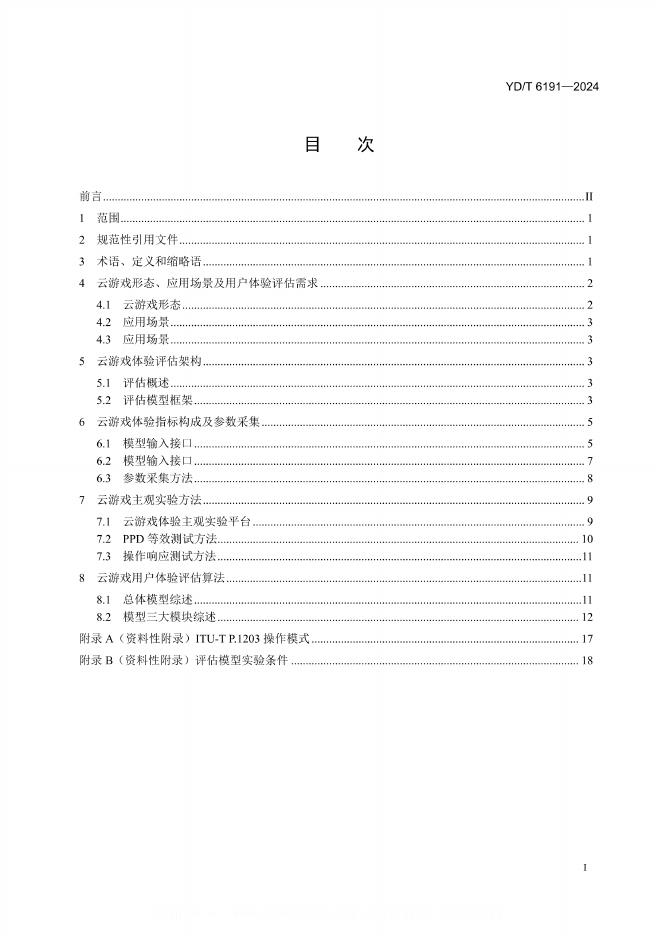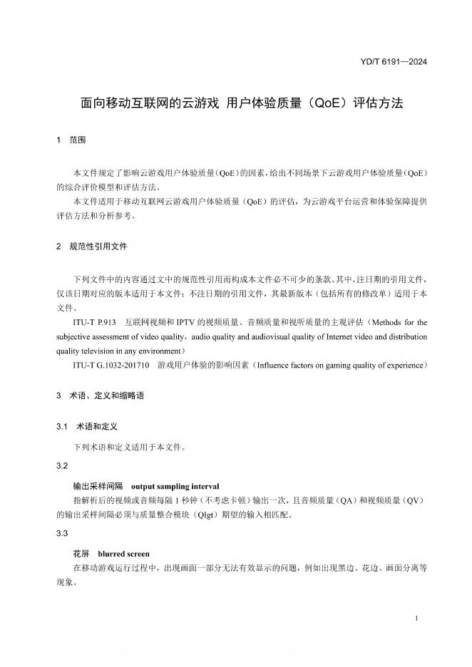 YD/T 6191-2024 面向移动互联网的云游戏 用户体验质量(QoE)评估方法