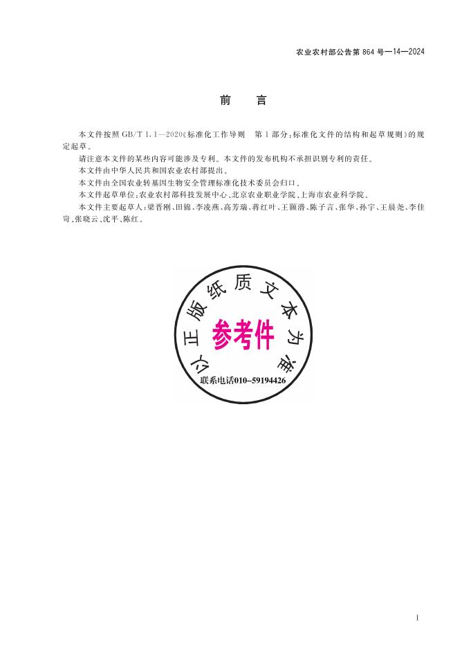 农业农村部公告 第864号-14-2024 转基因植物及其产品成分检测 抗虫玉米浙大瑞丰8转化体特异性PCR方法