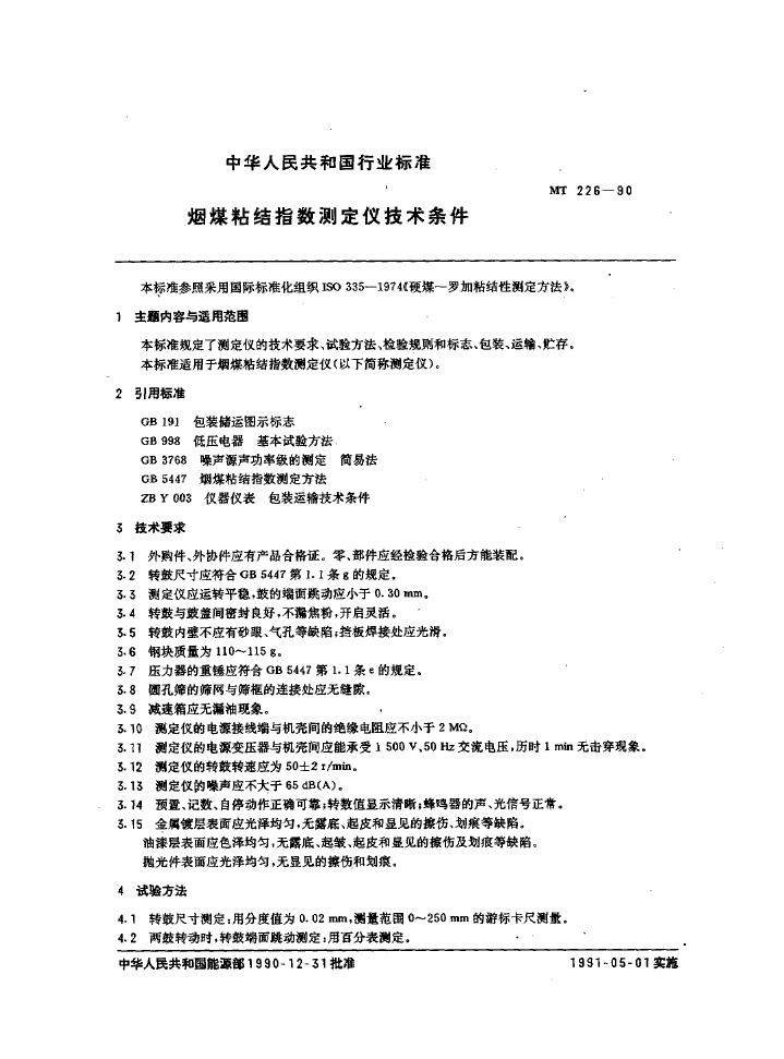 MT 226-1990 烟煤粘接指数测定仪技术条件