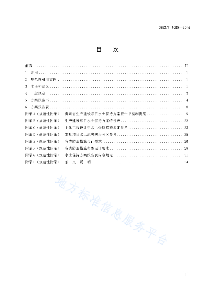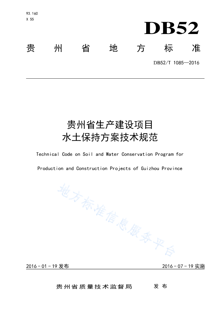 DB52/T 1085-2016 贵州省生产建设项目水土保持方案技术规范