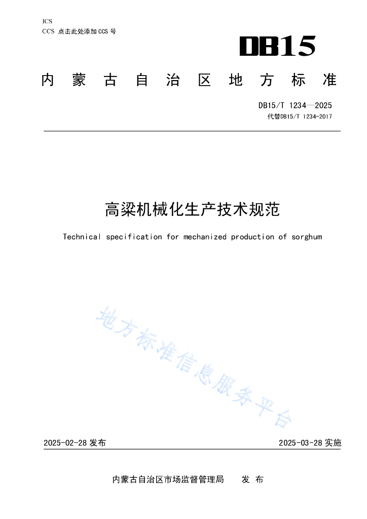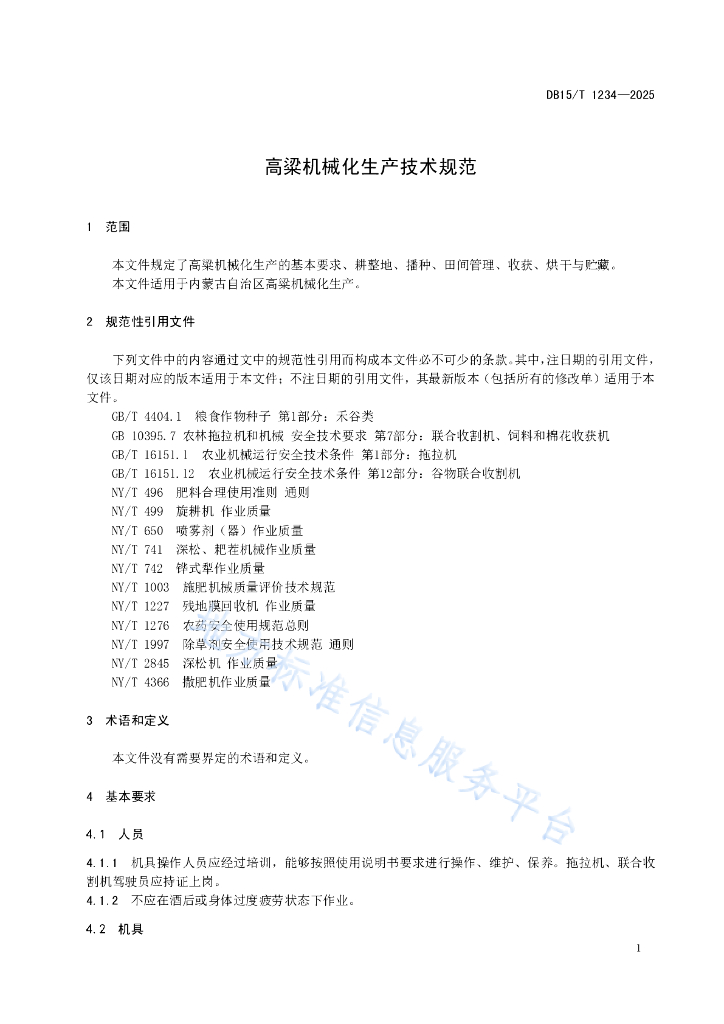DB15/T 1234-2025 高粱机械化生产技术规范