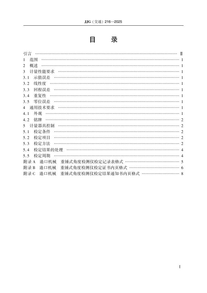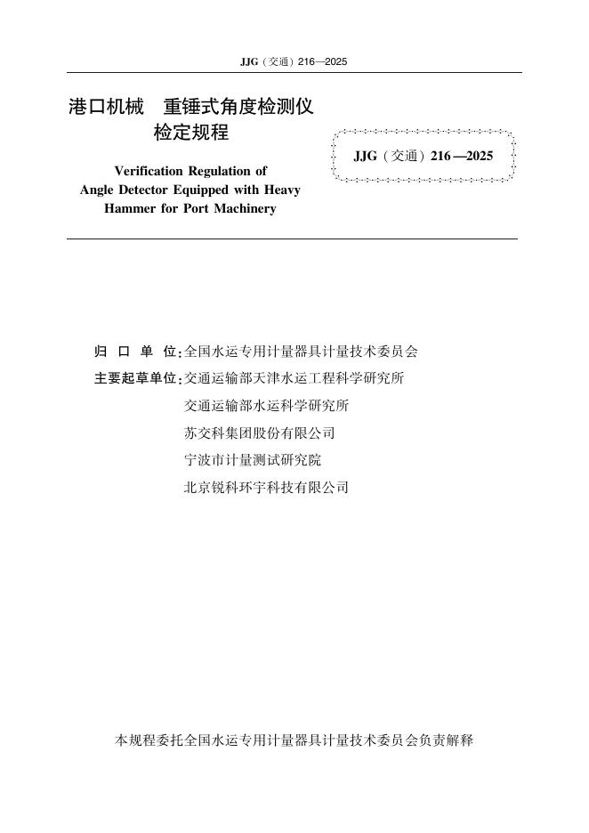 JJG(交通)216-2025 港口机械 重锤式角度检测仪