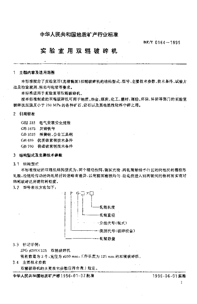 DZ/T 0164-1995 实验室用双辊破碎机
