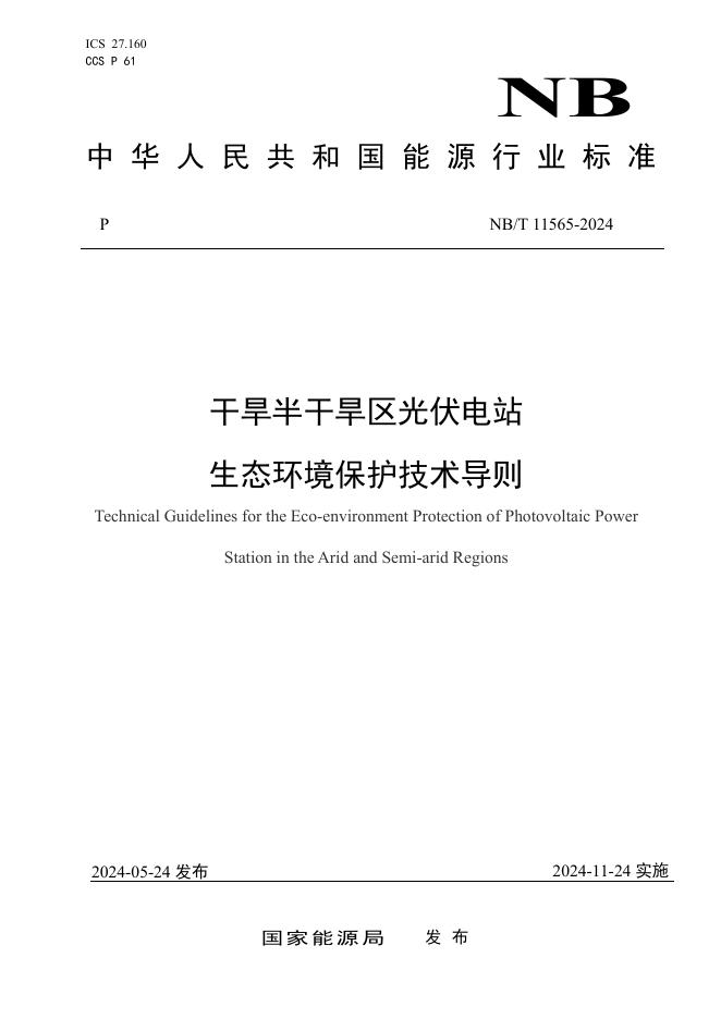 NB/T 11565-2024 干旱半干旱区光伏电站生态环境保护技术导则