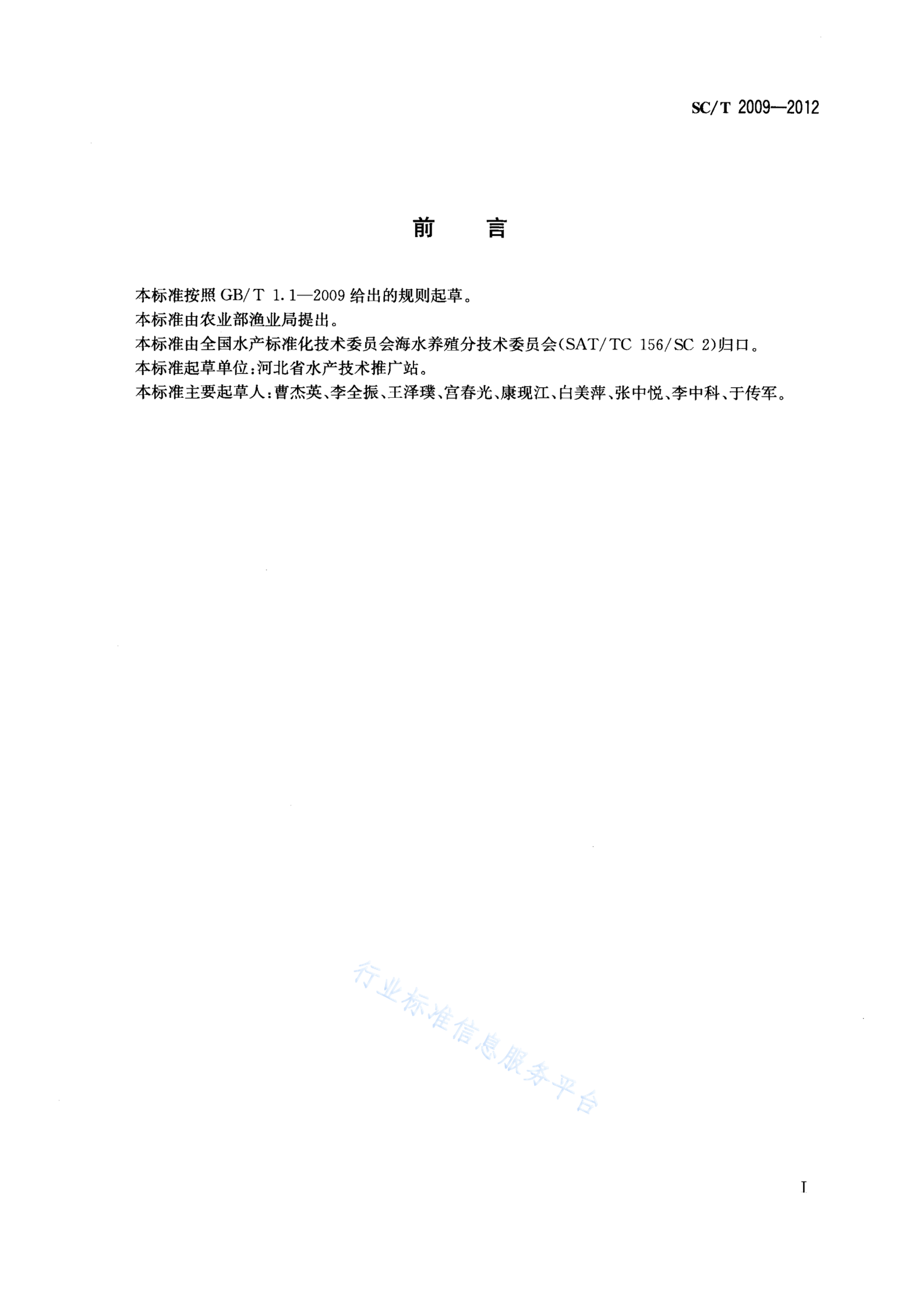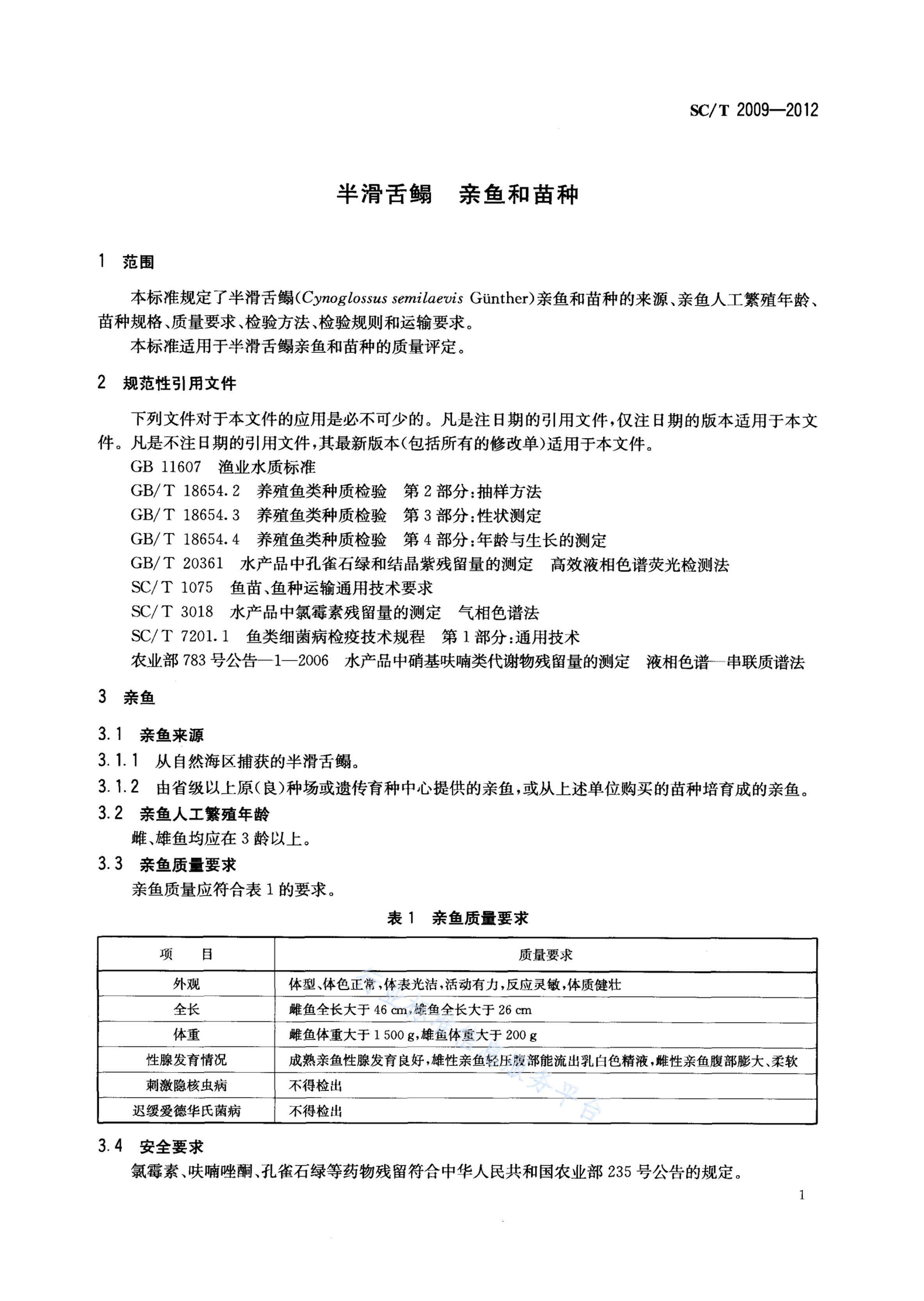 SC/T 2009-2012 半滑舌鳎 亲鱼和苗种