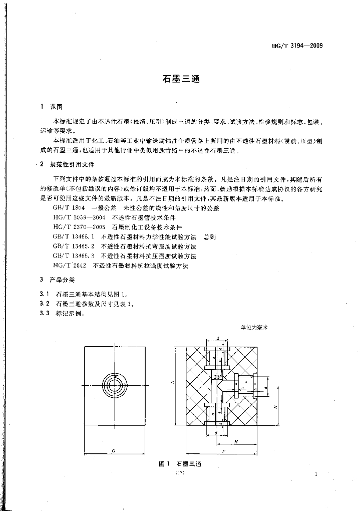 HG/T 3194-2009 代替 HG/T 3194-1981 石墨三通