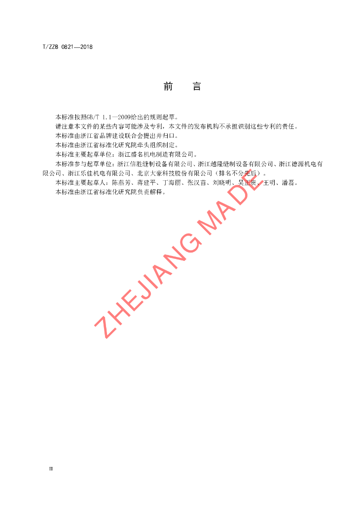 浙江盛名机电制造有限公司、浙江信胜缝制设备有限公司、浙江越隆缝制设备有限公司、浙江德源机电有限公司、浙江乐佳机电有限公司、北京大豪科技股份有限公司
