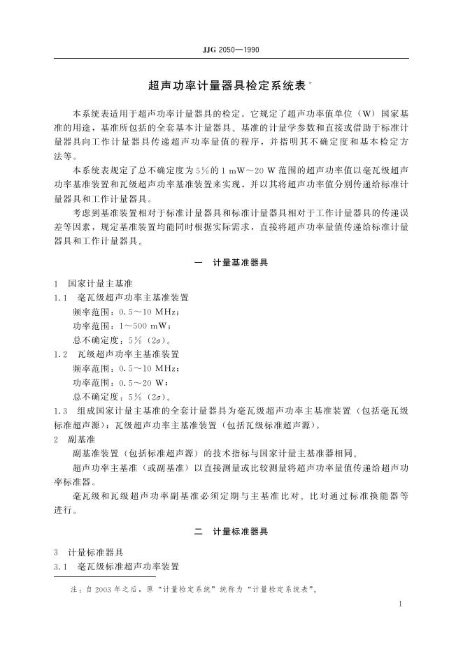 JJG 2050-1990 超声功率计量器具检定系统