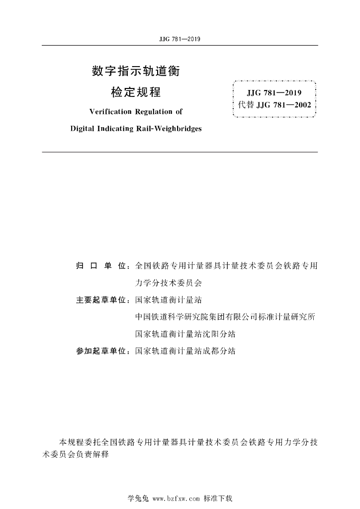国家轨道衡计量站、中国铁道科学研究院集团有限公司标准计量研究所、国家轨道衡计量站沈阳分站、国家轨道衡计量站成都分站