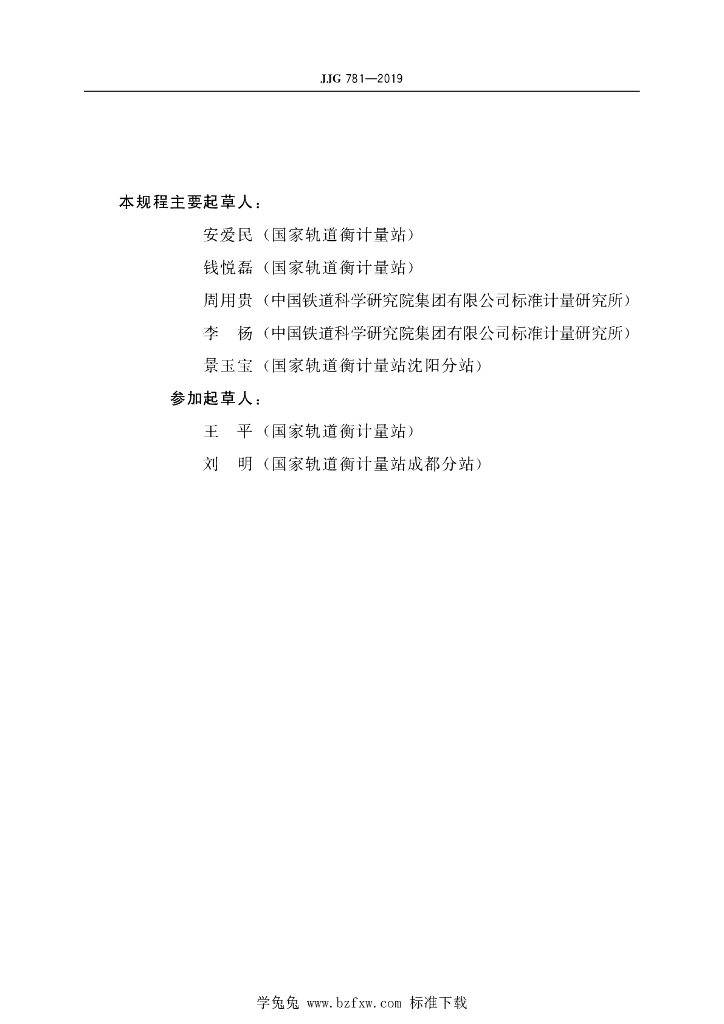 安爱民(国家轨道衡计量站)、钱悦磊(国家轨道衡计量站)、周用贵(中国铁道科学研究院集团有限公司标准计量研究所)、李杨(中国铁道科学研究院集团有限公司标准计量研究所)、景玉宝(国家轨道衡计量站沈阳分站)、王平(国家轨道衡计量站)、刘明(国家轨道衡计量站成都分站)