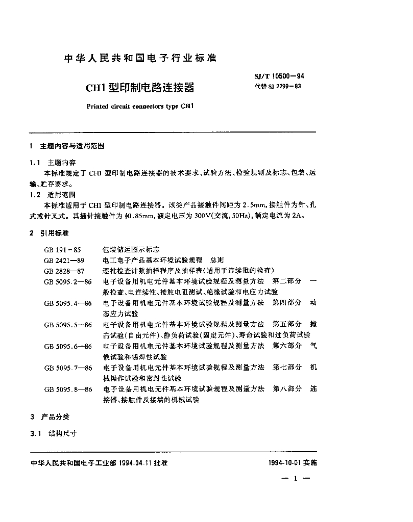 SJ/T 10500-1994 CH1型印制电路连接器
