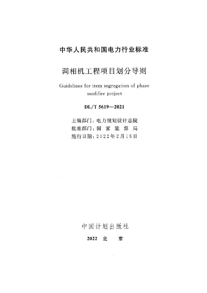 DL/T 5619-2021 调相机工程项目划分导则