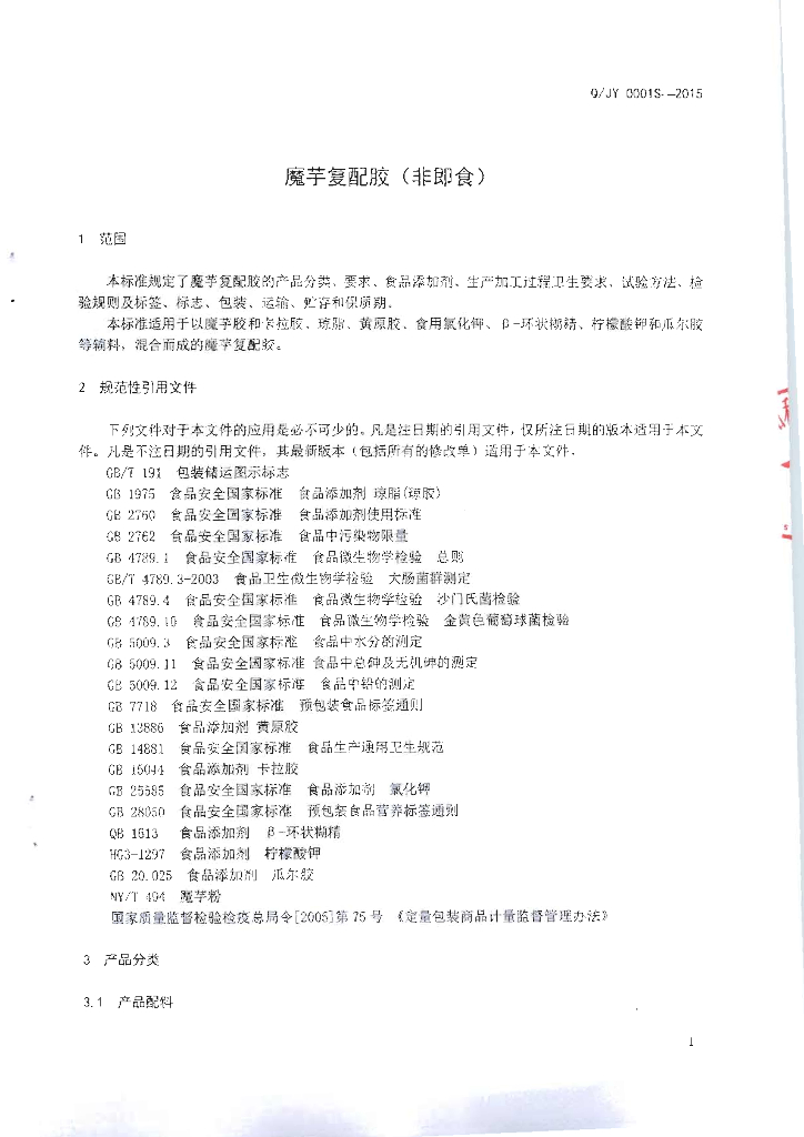 Q/JY 0001S-2015 北海佳源食品科技有限公司 魔芋复配胶(非即食)
