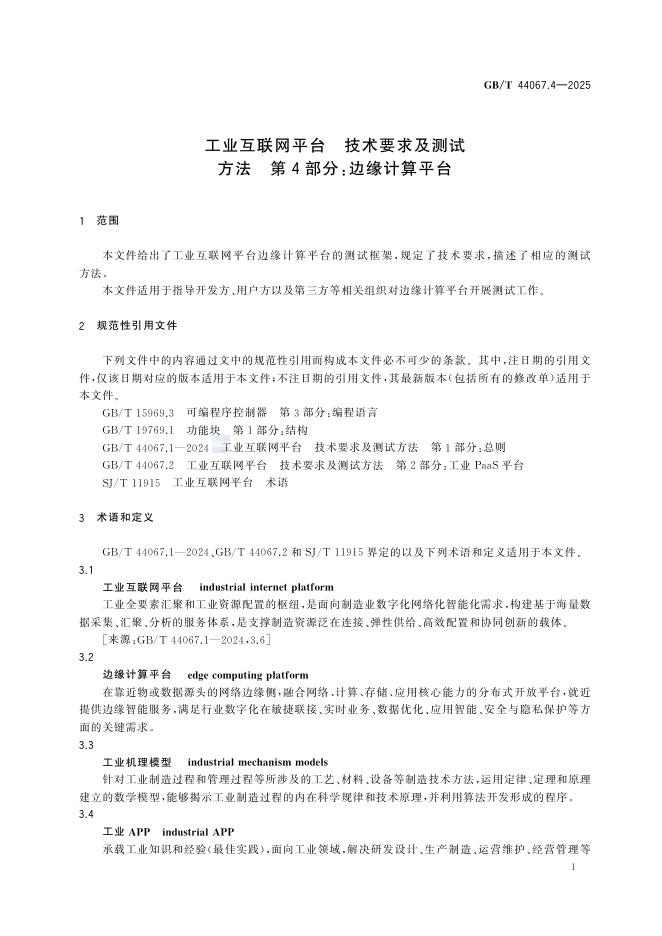 GB/T 44067.4-2025 工业互联网平台 技术要求及测试方法 第4部分:边缘计算平台