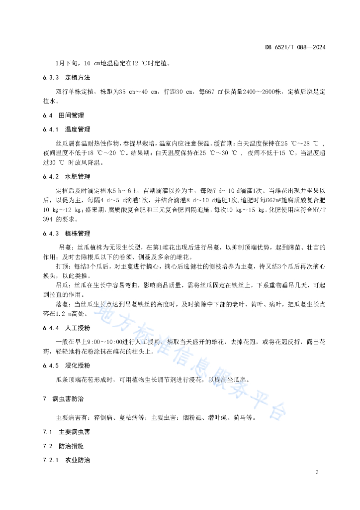 DB6521/T 088-2024 日光温室春提早丝瓜栽培技术规程
