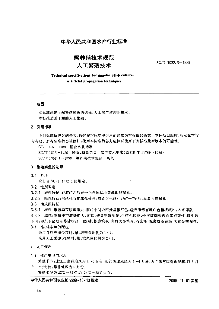 SC/T 1032.3-1999 鳜养殖技术规范 人工繁殖技术