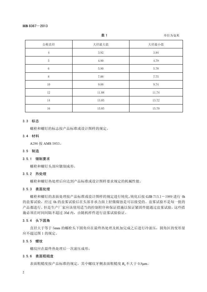 HB 8367-2013(2017) 1100MPA强度等级A286MJ螺纹螺栓和螺钉规范
