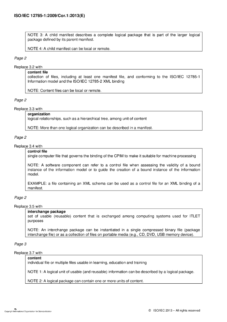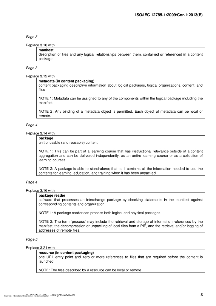 ISO/IEC 12785-1-2009/Cor 1-2013 勘误1:信息技术 学习,教育,培训 内容包装 第1部分:信息模型