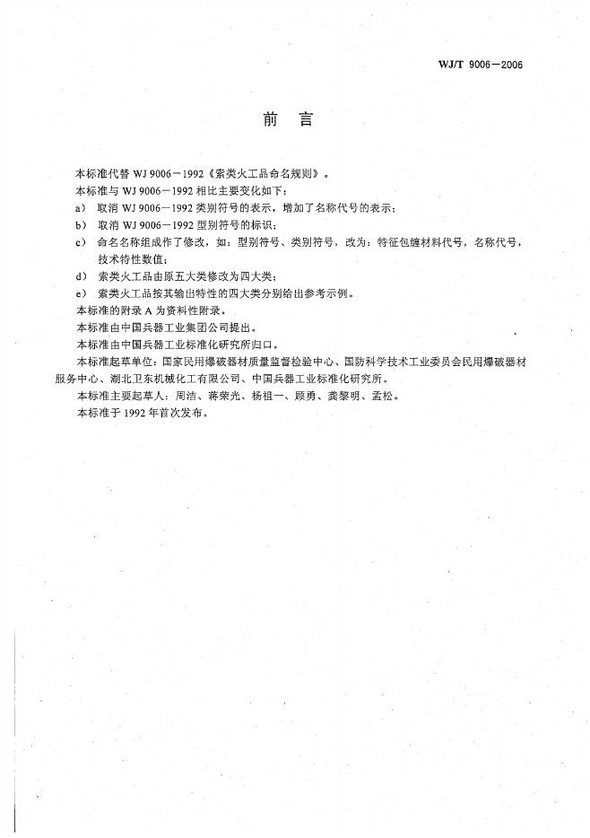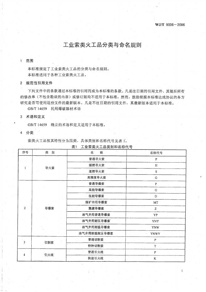 WJ/T 9006-2006 工业索类火工品分类与命名规则