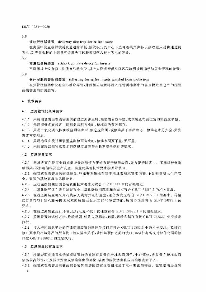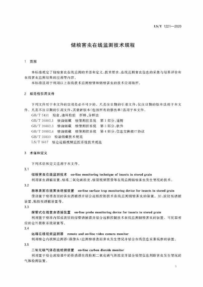 LS/T 1221-2020 储粮害虫在线监测技术规程