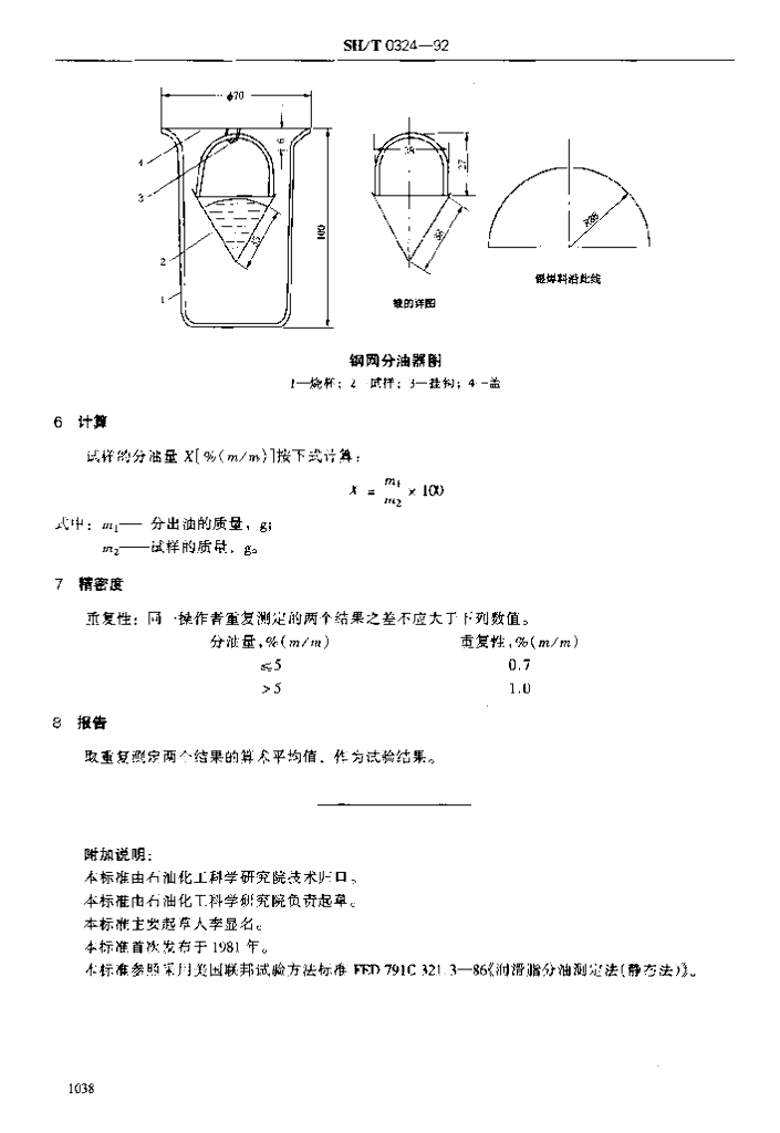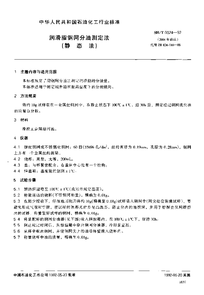 SH/T 0324-1992 润滑脂钢网分油测定法(静态法)