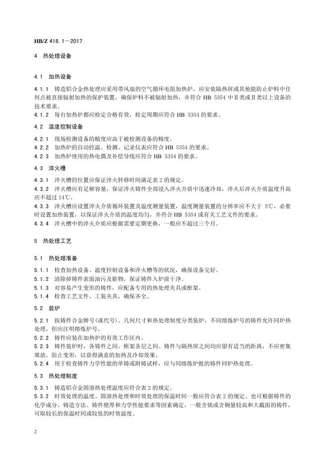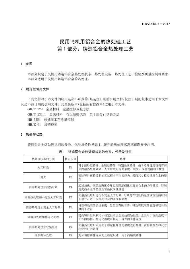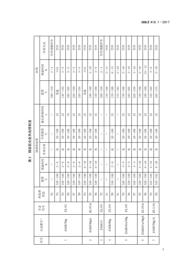 HB/Z 418.1-2017 民用飞机用铝合金的热处理工艺 第1部分:铸造铝合金热处理工艺