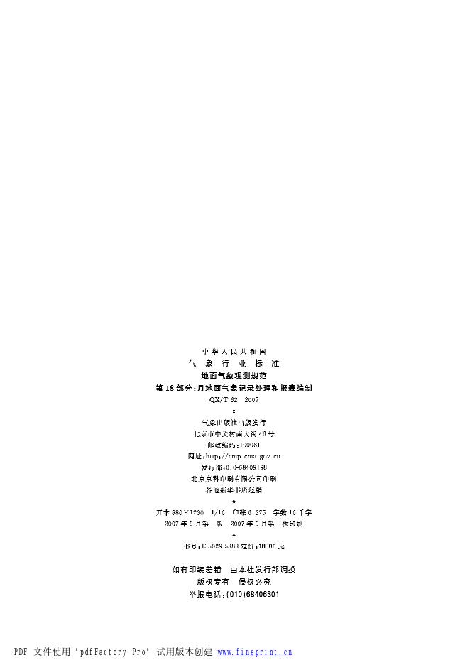 QX/T 62-2007 地面气象观测规范 第18部分:月地面气象记录处理和报表编制