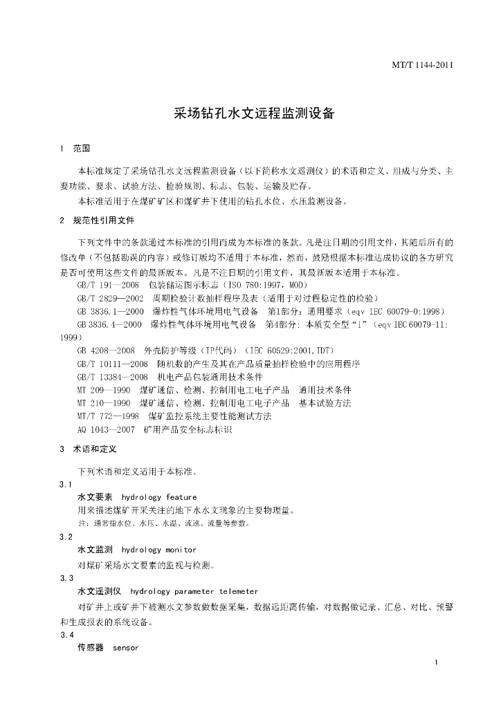 MT/T 1144-2011 采场钻孔水文远程监测设备